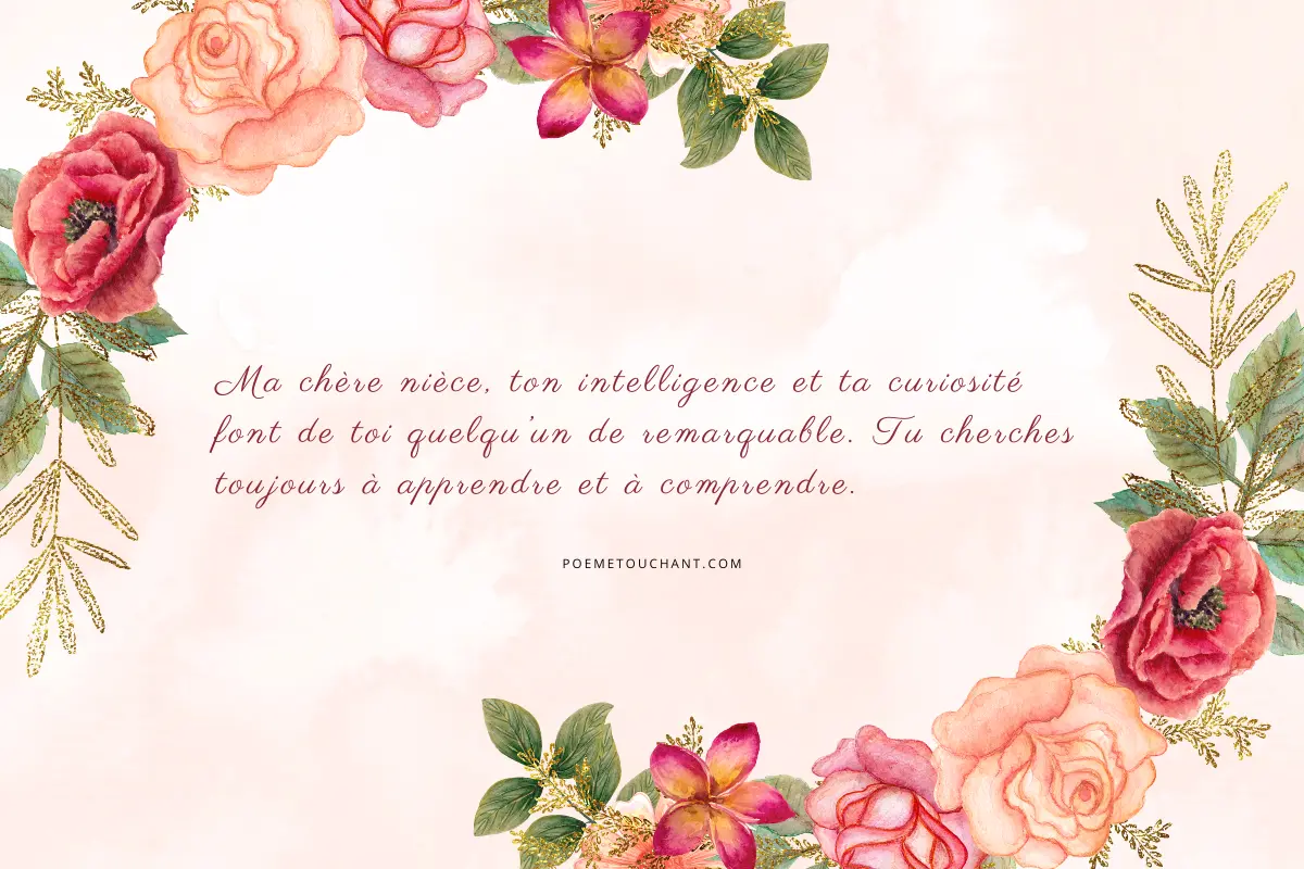 3. Ma chère nièce, ton intelligence et ta curiosité font de toi quelqu’un de remarquable. Tu cherches toujours à apprendre et à comprendre.