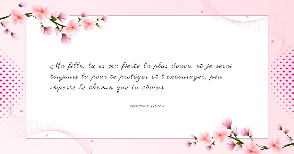 1. Ma fille, tu es ma fierté la plus douce, et je serai toujours là pour te protéger et t’encourager, peu importe le chemin que tu choisis.