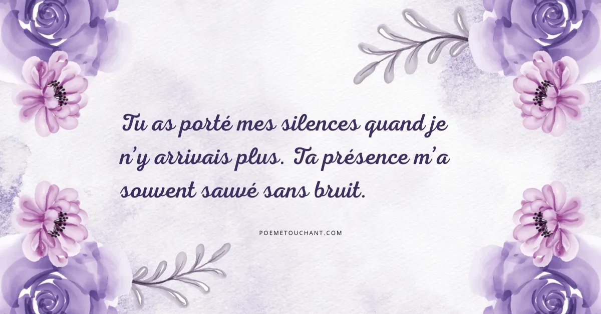 1. Tu as porté mes silences quand je n’y arrivais plus. Ta présence m’a souvent sauvé sans bruit.